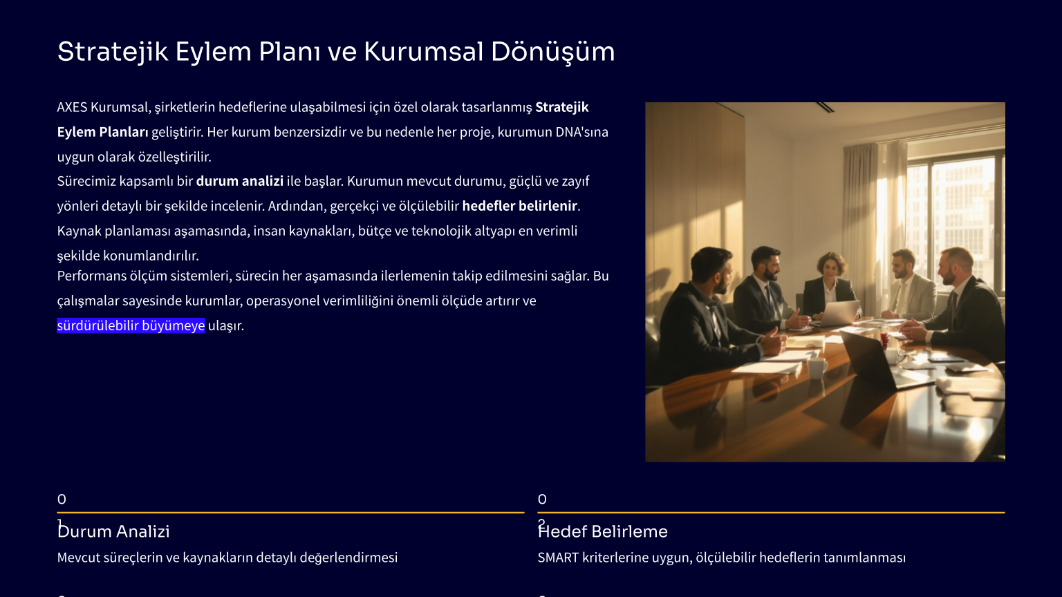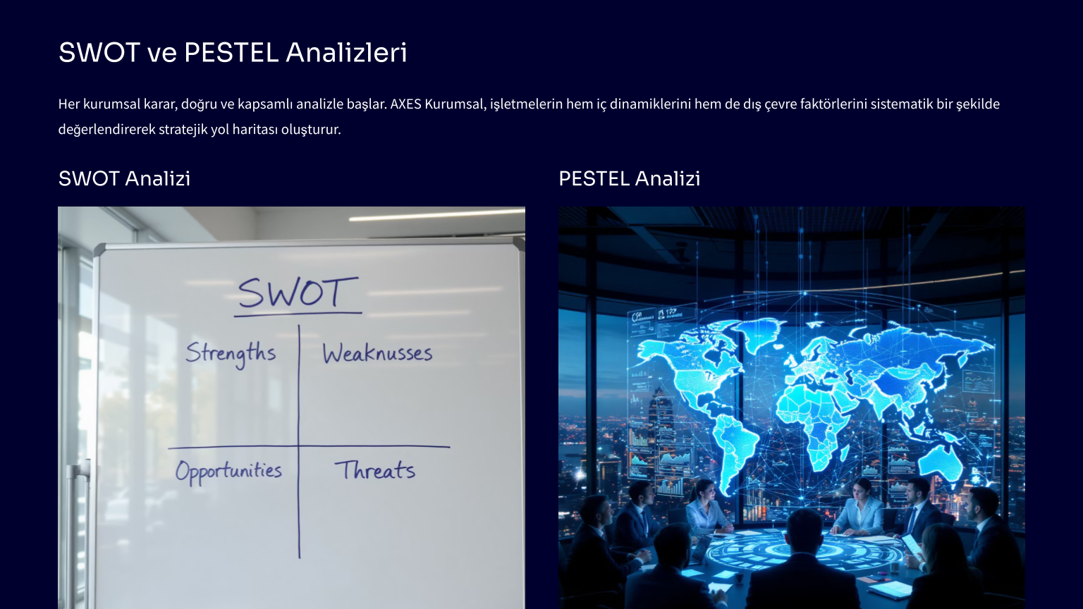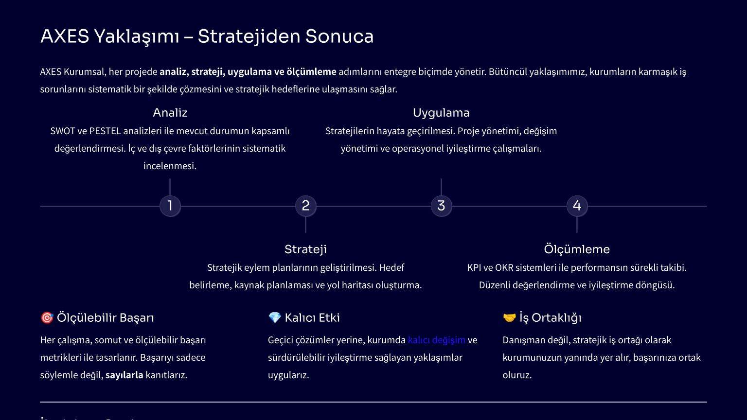 AXES Kurumsal, her proje için ölçülebilir sonuçlar üreten, veriye dayalı stratejik yaklaşımlar geliştirir.